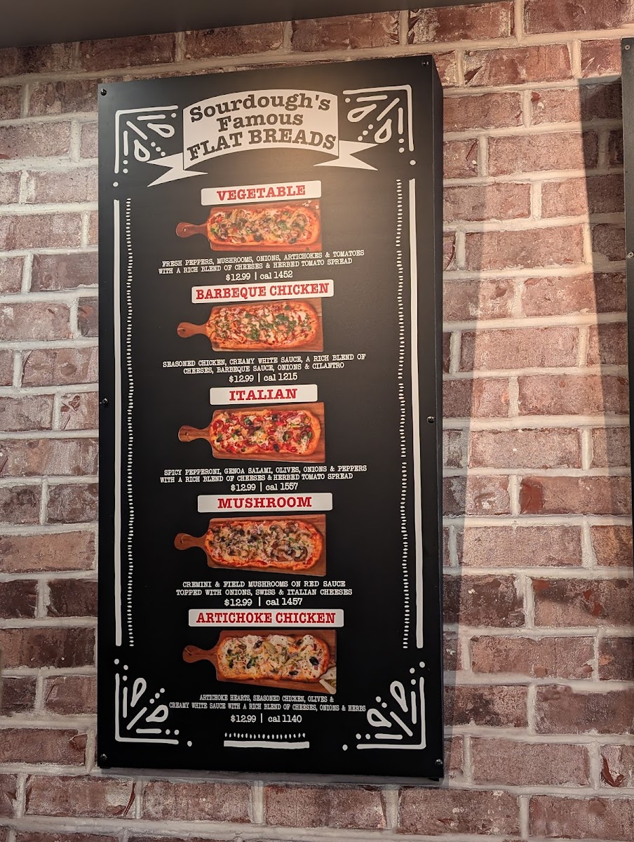 From a reviewer’s perspective, the menu at Sourdough & Co. Tracy Blvd offers a well-rounded selection that balances comfort food with fresh, deli-style options. The Soup Of The Day and New England Clam Chowder provide warm, classic starters, while the White Chocolate Macadamia Cookie, Chocolate Chip Cookies, and Lemon Cooler Cookies add a sweet finish. The sandwich lineup is a highlight, especially the #5 Turkey & Salami, #7 Pastrami Reuben With Sauerkraut, #9 Cracked Pepper Turkey, Cranberry Turkey (Specialty Sandwich), and Caprese (Specialty Sandwich), all offering a variety of flavors from traditional to specialty combinations. For lighter choices, salads like the Southwest Chicken Salad, Italian Salad, Grilled Chicken Caesar Salad, Greek Salad, and Cobb Salad provide fresh alternatives. Comfort food lovers will appreciate the Mac & Cheese - Small, Mac & Cheese - Large, and Mac & Cheese - Bread Bowl, which are hearty and satisfying. The menu also includes beverages such as Peace Tea Peach, Red Bull (8.4 Oz.), Peace Tea CaddyShack, Calypso Southern Peach Lemonade, and Calypso Paradise Punch Lemonade, along with flatbread options like BBQ Chicken Flat Bread, Artichoke Chicken Flatbread, Italian Flatbread, Vegetable Flatbread, and Mushroom Flatbread, making the overall menu diverse and appealing for a wide range of tastes.